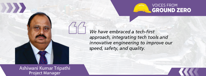 March 2026 looms before Project Manager, Rajesh Chopra, and his team of Himalayan warriors as they push forward to deliver the tough RVNL Package 2 by constructing several tunnels, bridges & formation works. While the team’s efforts to establish a robust tunnel communication system, deploy video analytics, monitor fuel consumption and digitalize drill jumbos & shotcrete machines for enhanced efficiencies have already been dealt with*, here are some more ways they are smartly using technology to fast-track construction.