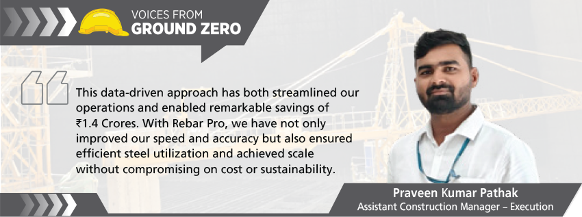 The advantages of Rebar Pro are many: it enables precise tracking of rebar inventory from receipt to fabrication and placement, optimizes usage of offcuts by reducing procurement cost & scrap, ensures material traceability & seamless reconciliation with drawings and contributes to sustainable construction practices by minimizing rebar wastage. “With Rebar Pro, we have not only improved our speed and accuracy but also ensured efficient steel utilization and achieved scale without compromising on cost or sustainability,” sums up an elated Praveen.