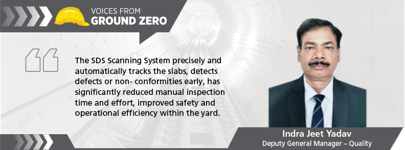 Indra Jeet Yadav, Deputy General Manager – Quality, is a happier man now. “The SDS Scanning System precisely and automatically tracks the slabs, detects defects or non-conformities early, has significantly reduced manual inspection time and effort, improved safety and operational efficiency within the yard,” he says, with josh.
