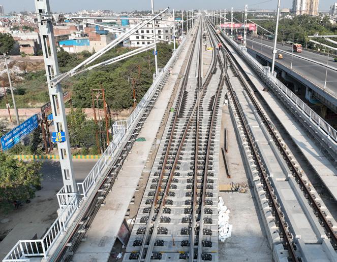 These also promise long service life, reduced vibrations, and consistent geometry. “We installed 135 slab track turnouts across the corridor, 119 on viaduct sections and the other 16 on underground segments,” informs Nikhil, “and each turnout installation was an intricate process, utilizing a combination of specialized materials and equipment.”Founded on precast turnout slabs, complemented by switch and stock rails along with fastening systems, the turnouts have been installed using sophisticated tools like hydraulic jacks, rail changers, precision survey instruments, RRV Hydra 360 for slab handling and more.