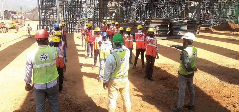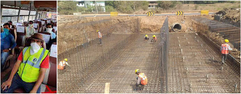 The Admin and IR teams at the MNEP ensured the health and safety of nearly 1500 workmen and 220 employees led by Satish Koti in Camp-1 and B. Kishore Kumar in Camp-2 guided by Vikranth Joshi, Rajasekhar, PV Santhosh Kumar and Girish Nandhyal. The Aurangabad Karodi Road project (KARP) team had to safeguard about 89 employees, 210 departmental workmen and 545 contract workmen with a team led by Project Manager, Randhi Surya Rao, EHS, Sarju Nadan Patra, IR Manager, Yugal Kishore Gupta and Site In charges – Bharat Singh and Pankaj Kale. “We deployed a micro monitoring plan,” informs Surya Rao. “dividing all the workmen into groups of 25 each with a mentor (respective engineer) appointed for each group whose responsibility was to take care of his group and keep me informed of developments on a regular basis.”