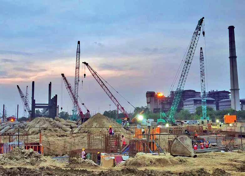“Since resumption, we have completed 360 piles, 17,990 cum of concreting, 1635 MT of reinforcements and 2029 MT of structural steel fabrication,” shares Sanjeevi, reeling off the numbers in a rush. “We successfully completed the vacuum pump house slab of (20 X 41 m span), 300 cum concrete with a staging volume of over 3600 cum and formwork of 1400 sqm, roof beams of 2 m depth and installed multiple EPs for further mechanical works.” The team has completed a 792 cum transfer tower foundation installed with 100 bored cast insitu piles of 600 mm dia, involving excavation at a depth of 4 m below ground, PCC, pile chipping, two lateral load test works and 114 MT of reinforcement and shutter works with waler and tie road fixing. “We have also successfully completed major pile cap foundations for the External Coal Handling System involving excavation, pile chipping of more than 250 numbers and reinforcement works of more than 450 MT,” continues an obviously excited Sanjeevi. “That we have handled a total volume of more than 5000 cum in the last two months shows our momentum and pace of works during these crisis times.”